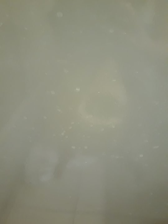 Badezimmertür mit Wasser und Schmutzflecken von mehrerern Vorgängern