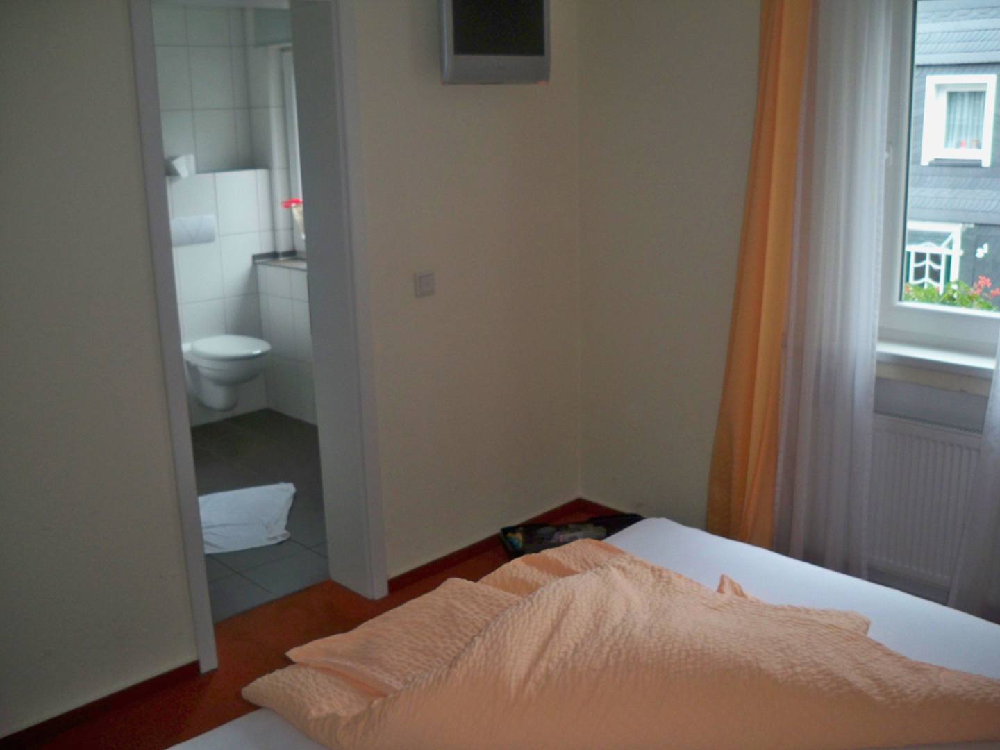 Zimmer mit Blick ins Bad