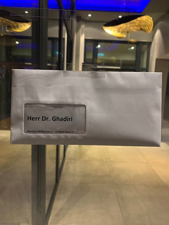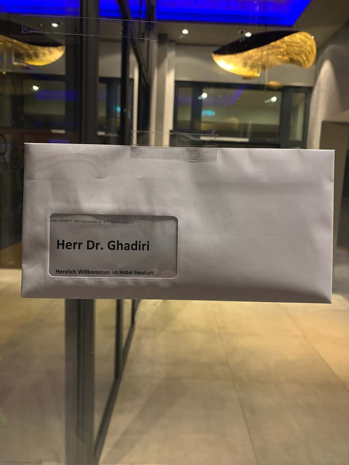 Zimmerkarte bei Spätanreise außen an Haustür.