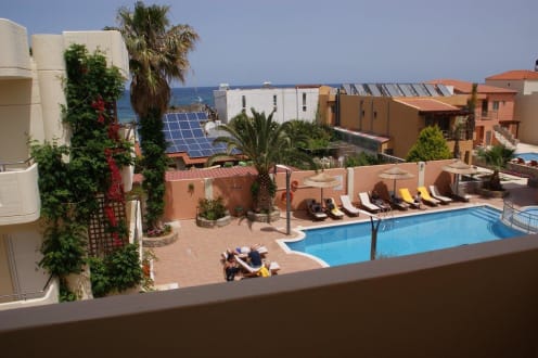 Widok w dzien z naszego pokoju na basen i morze