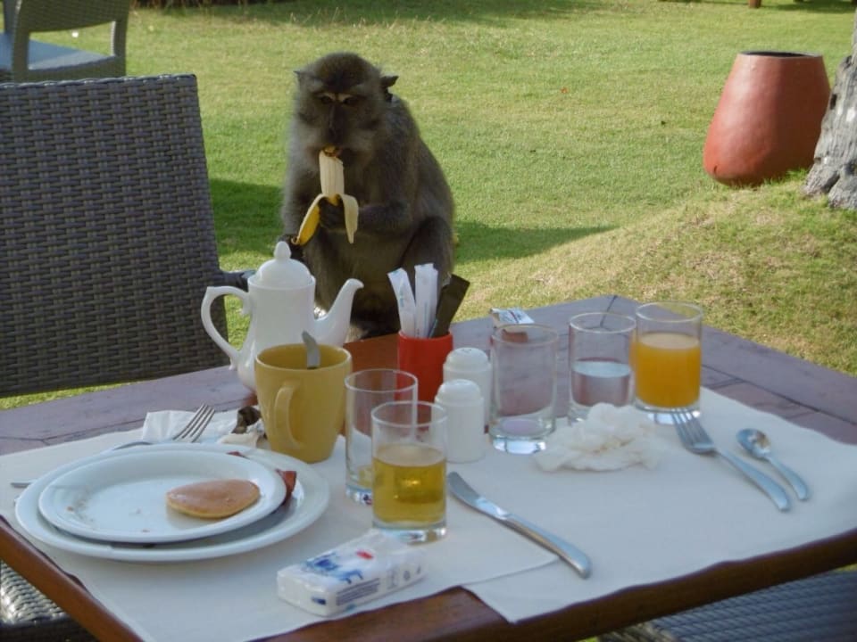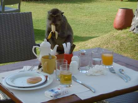 Affe klaut Bananen beim Frühstück ;-)
