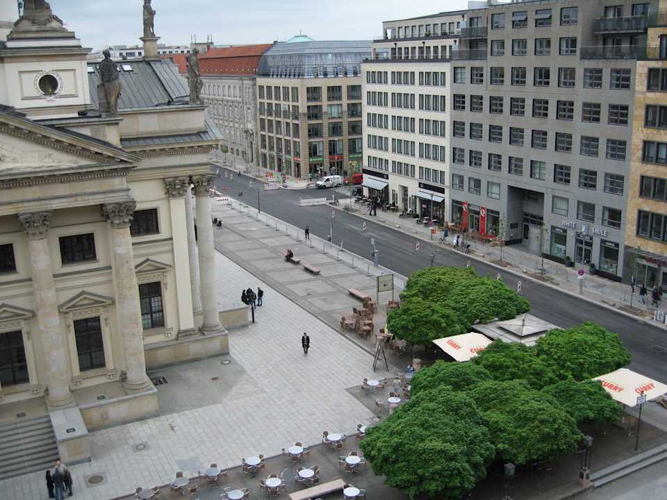 Ausblick auf den Gendarmenmarkt mit dem Currywurst-Stand vom Hilton - lecker!
