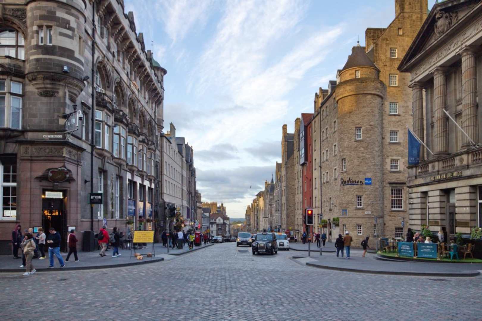 Geradeaus die Royal Mile, links ein Teil des HILTON