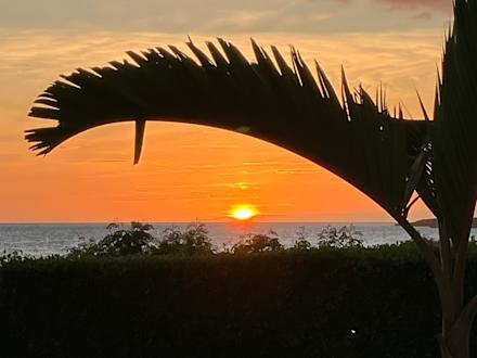 Sonnenuntergang in Gartenanlage vom Hotel