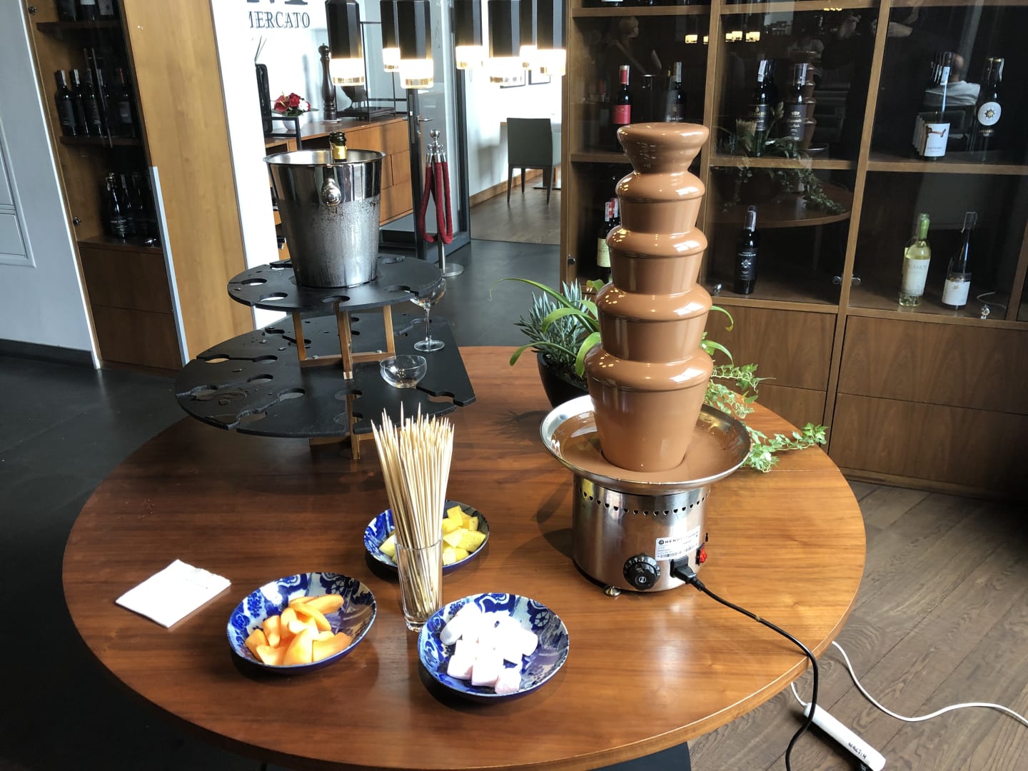 Frühstück am Wochenende mit Prosecco und Schokobrunnen