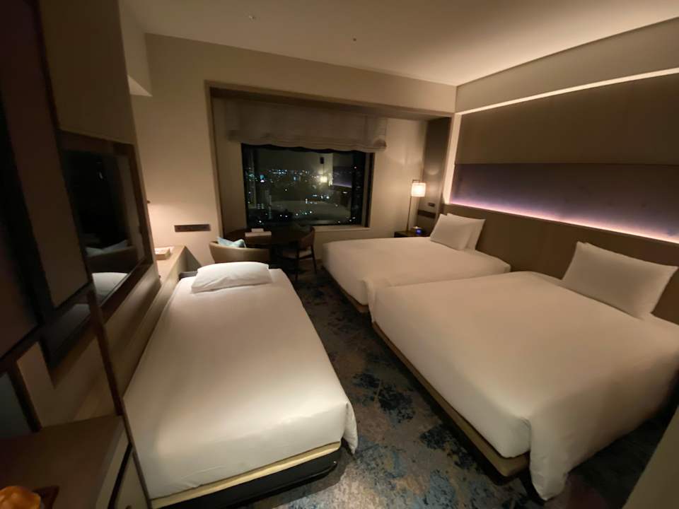 2x Queensize Betten und ein ca. 1m Bett hinzugestellt als Familienzimmer.