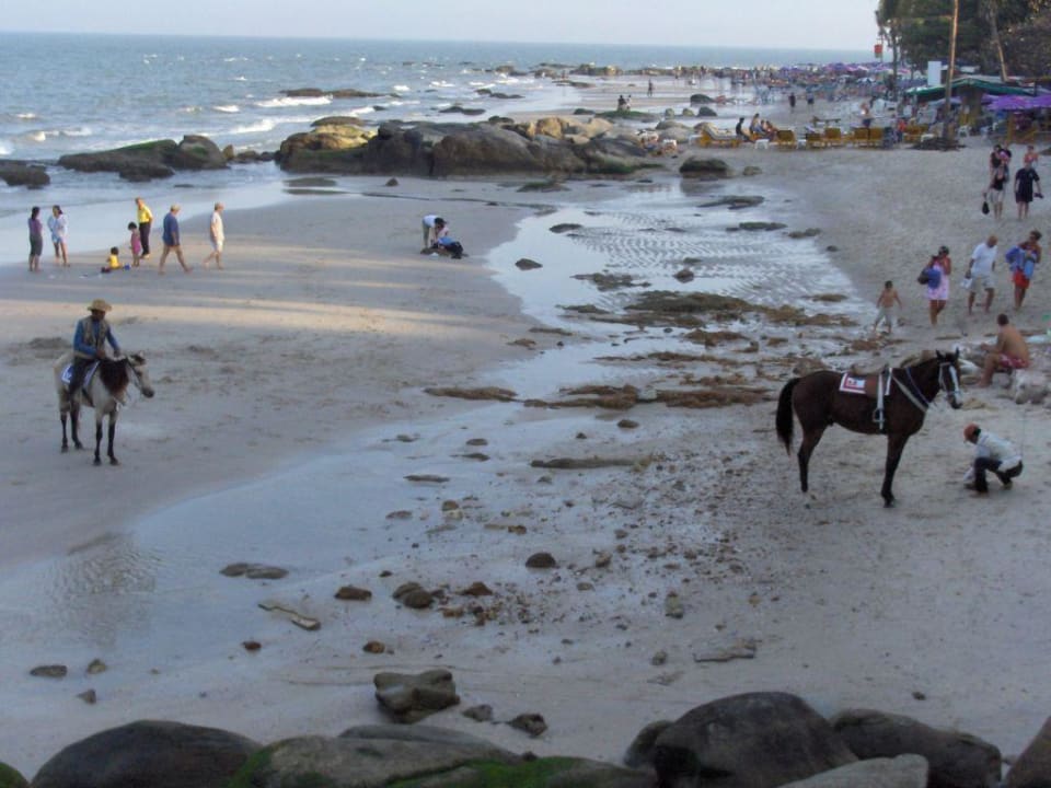Strand mit den überall und ständig präsenten Pferden. Diese dienen der Unterhaltung der Urlauber (Strandritte in vollem Gallopp möglichst nahe an den Liegestühlen) und düngen auf ganz natürliche Weise den Strand!
