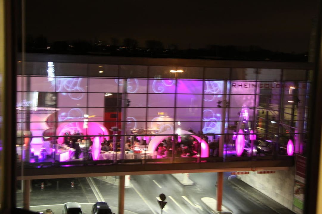 Da unser Zimmer ganz oben über dem Eingang der neuen Spielbank lag, hatten wir diesen Blick auf die Rheingold-Halle mit einem vorweihnachtlichen Event. (Musik war hörbar, aber extrem leise)