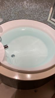 Badewanne im Zimmer mit Ausblick aufs Meer auf