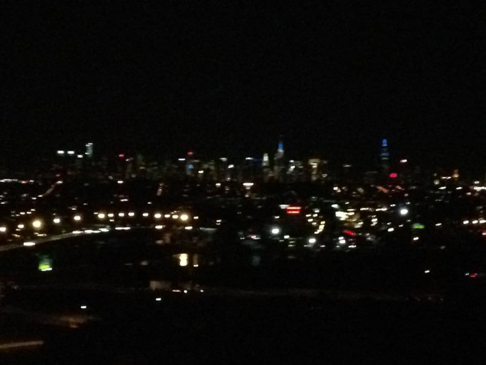 Beleuchtete Skyline von NYC aus dem 17. Stock