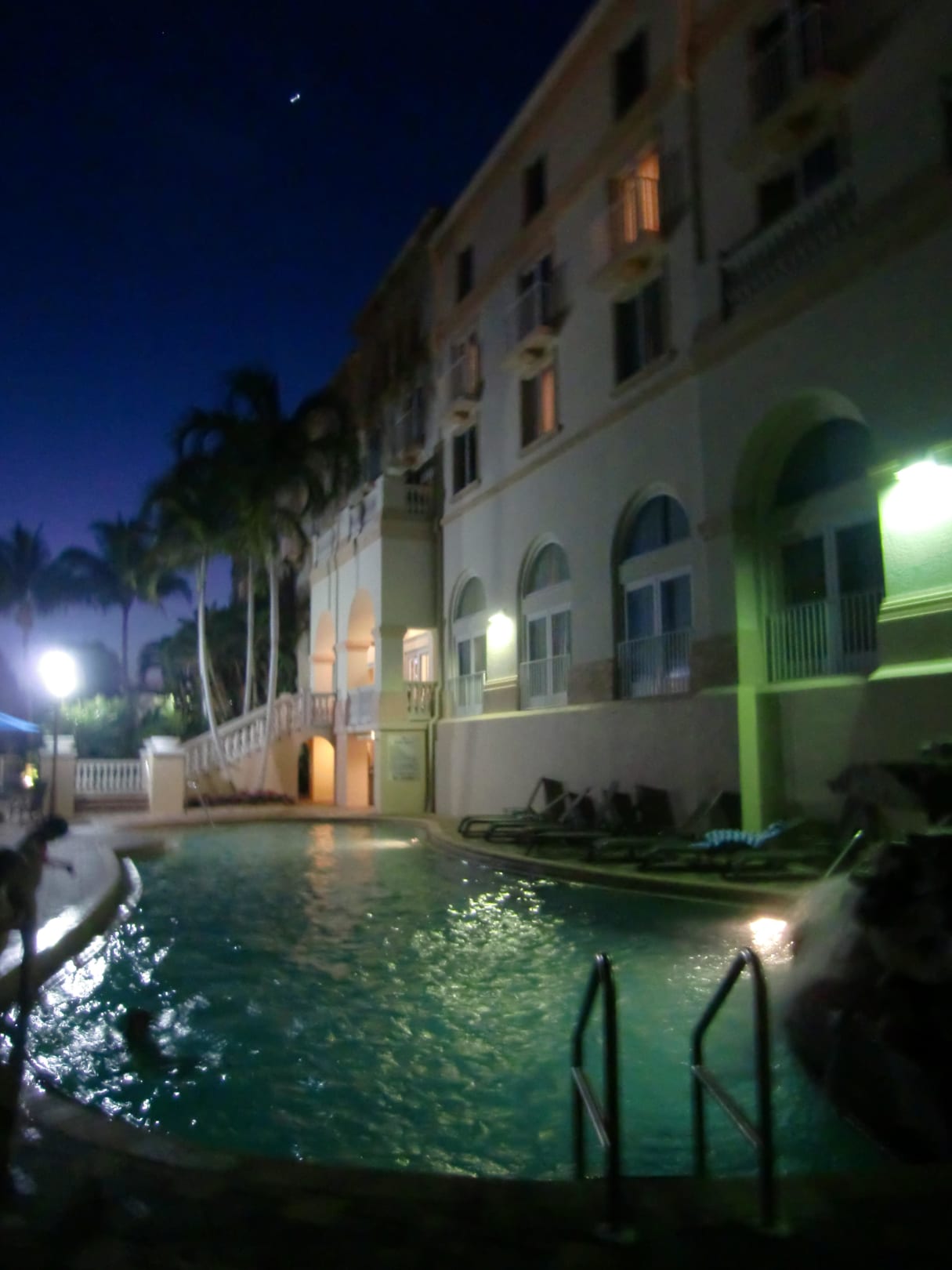 Blick auf den Pool mit kleinem Wasserfall