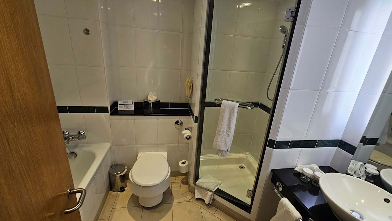 Das Bad ist mit Wann und Dusche ausgestattet.