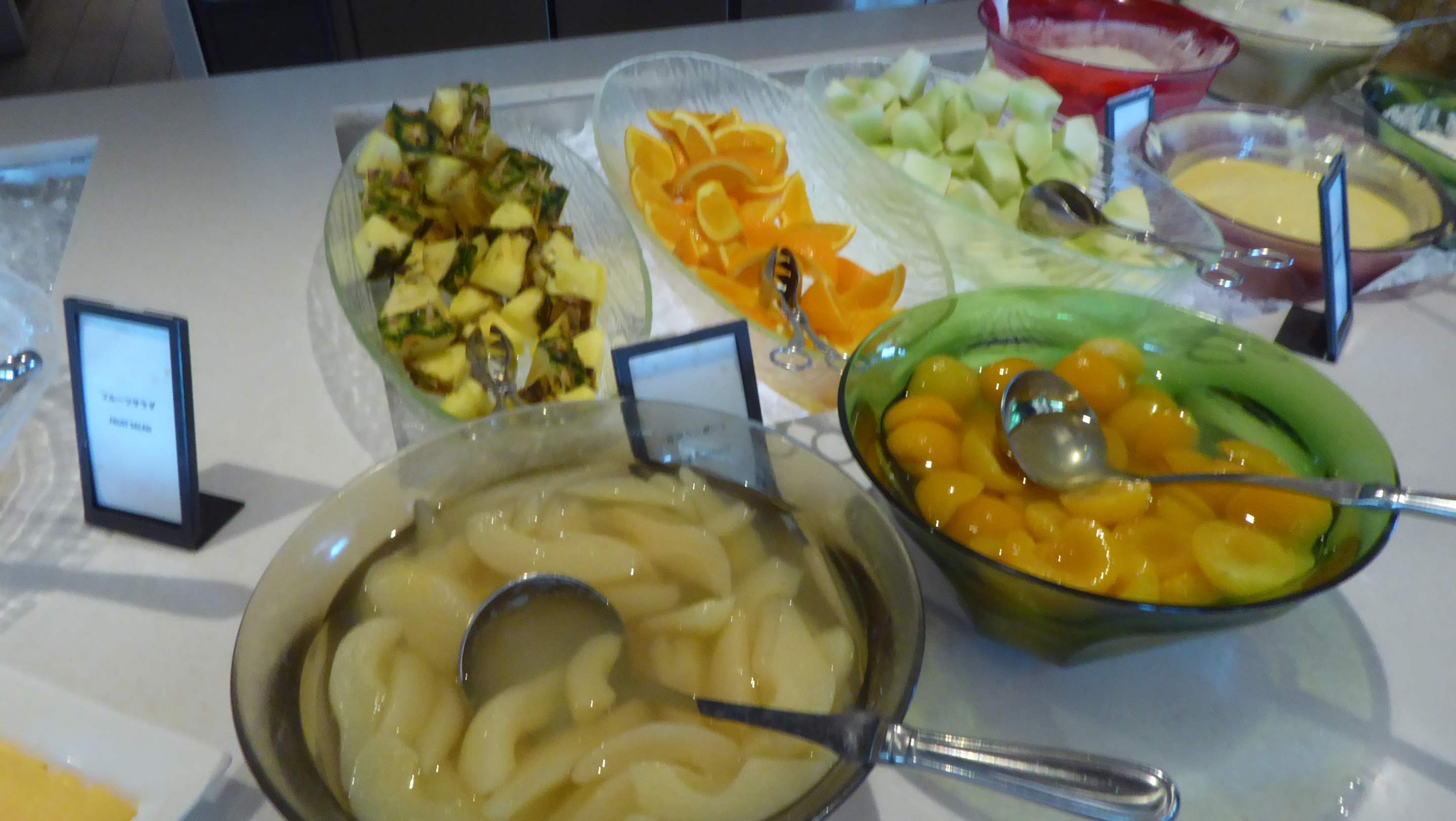 RestaurantUnterirdisches Nachtischbuffet! Ananas mit Schale (nicht mal angeschnitten), wie soll man das essen? Orangen auch mit Schale und nicht angeschnitten. Honigmelone nicht reif, hart, völlig geschmacklos. Und Aprikosen und Birnen aus dem Eimer. 5-Sterne?