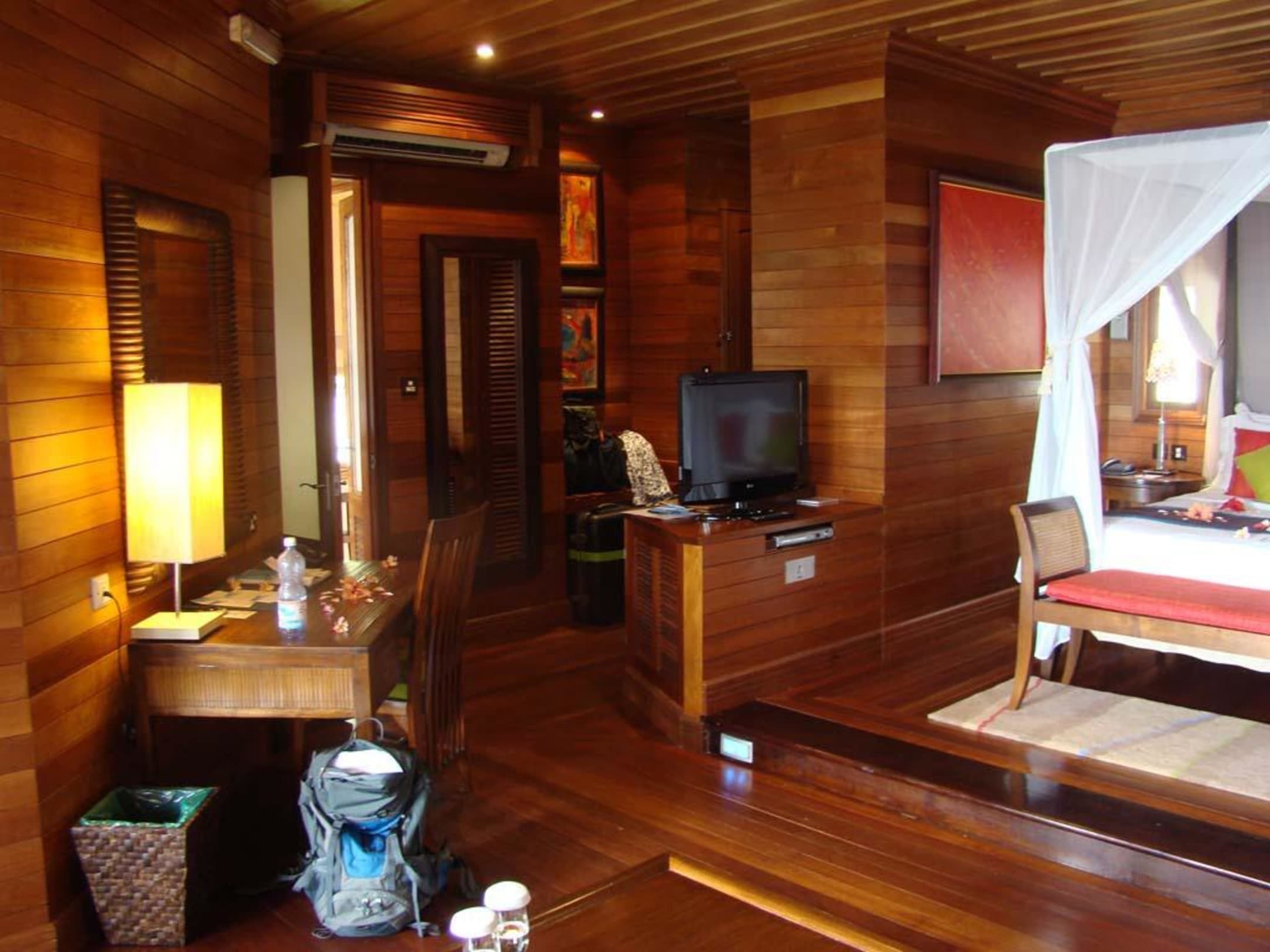 Eingangsbereich des ZimmersDas Foro wurde von der Sitzecke aus aufgenommen und zeigt neben dem Eingangsbereich noch das halbe Himmelbett.