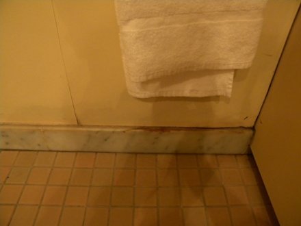 Versaute Fussleiste neben der Wanne.