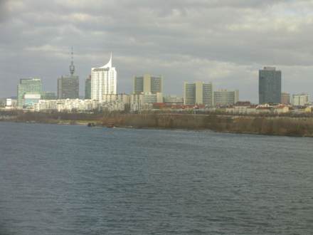 Der Ausblick über die DonauVom Hotel aus hat man einen schönen Blick über die Donau, hier Richtung UNO-City und Kaisermühlen.
