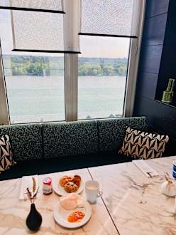 Frühstück in der Lounge mit Blick auf die Donau