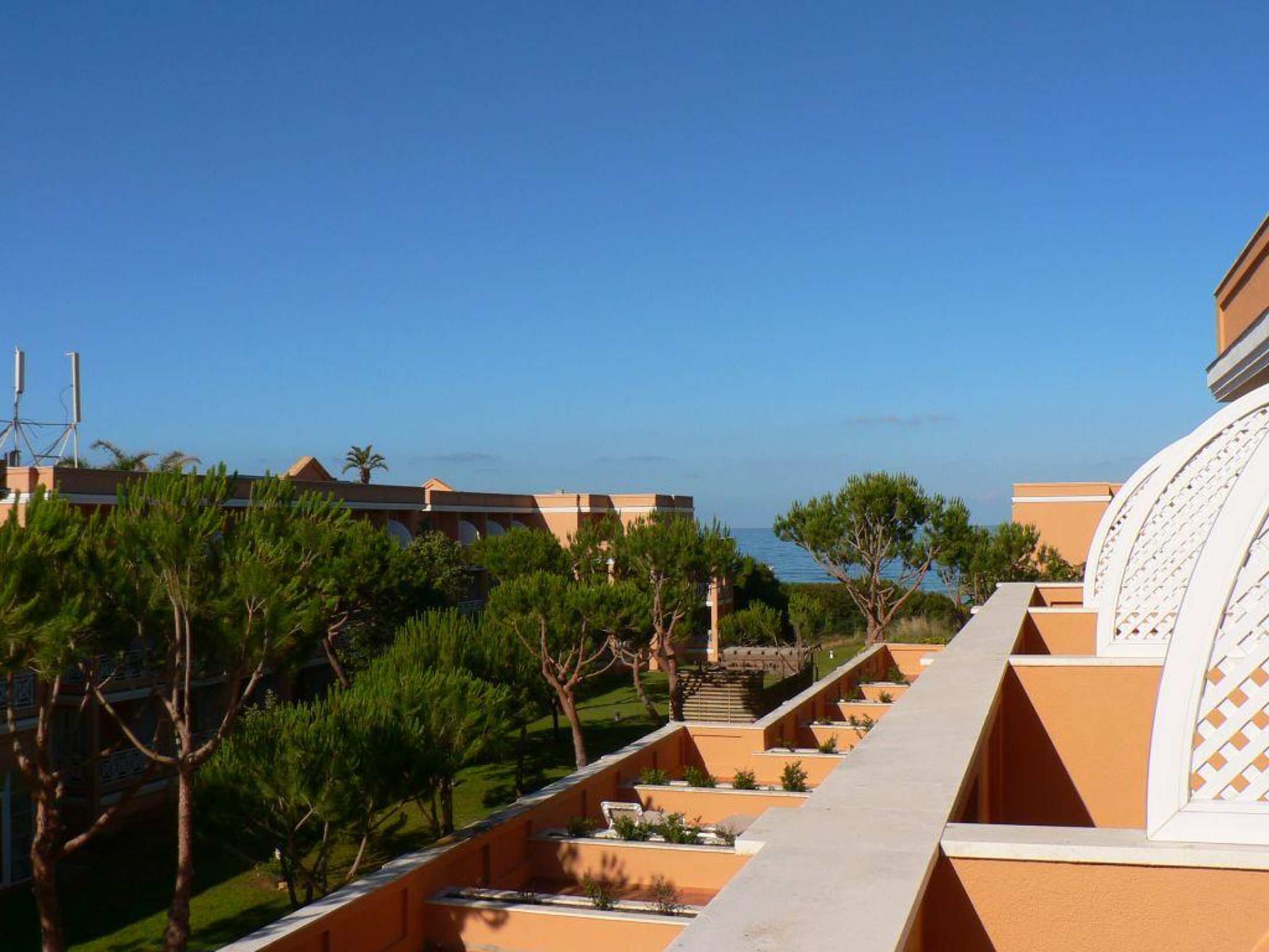 Zimmer 1380; Aussicht vom Balkon zur Seite