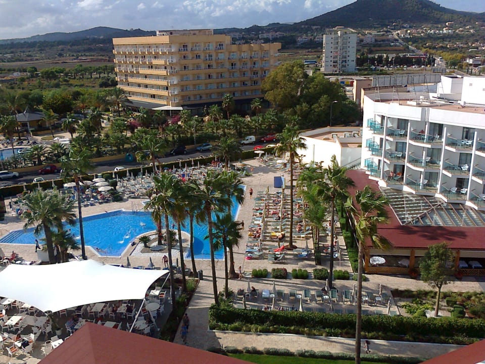 Blick vom Dach auf die Poolanlage