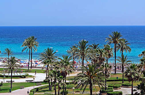 Aussicht vom Balkon auf Cala Millor Strand.