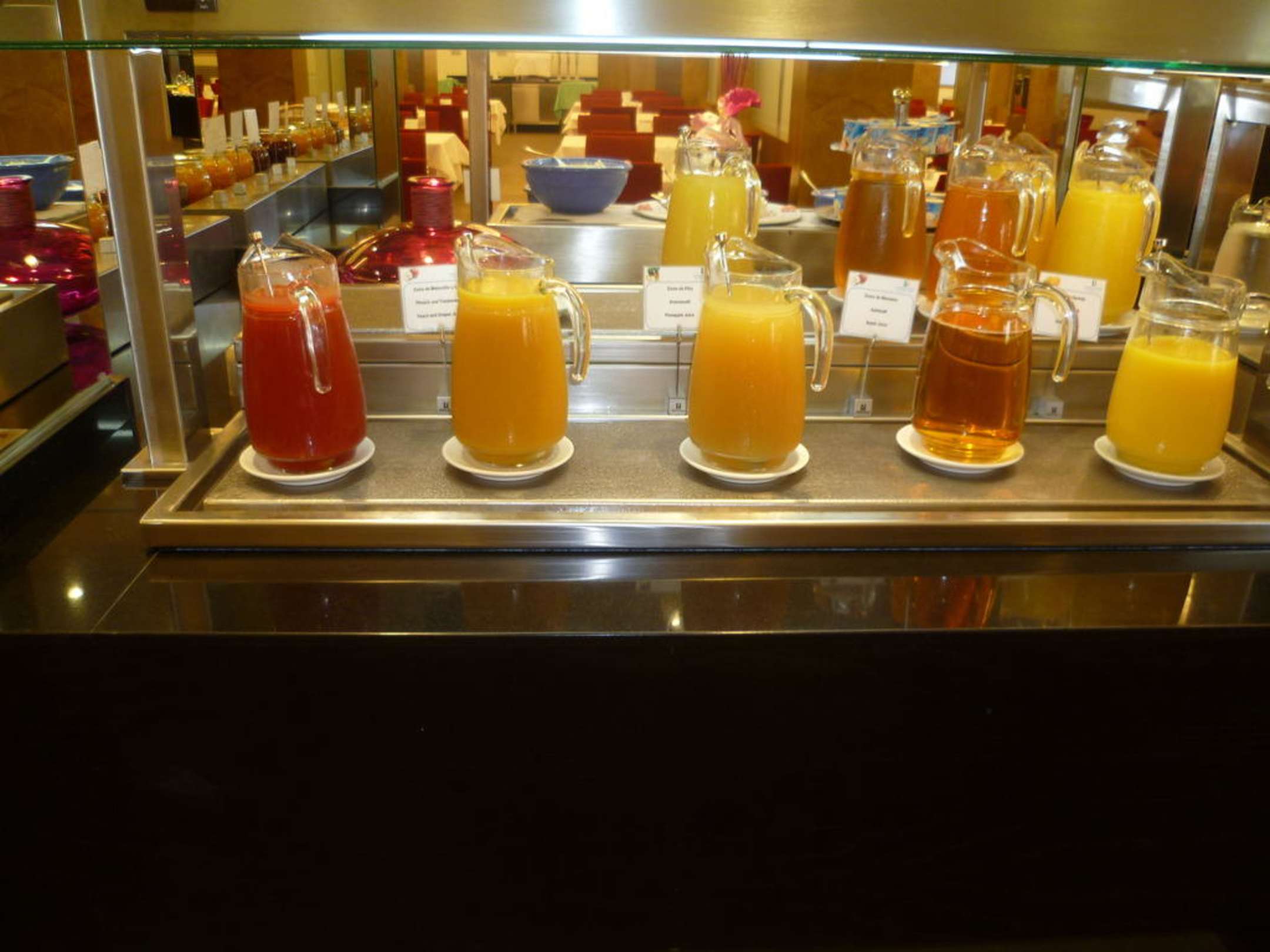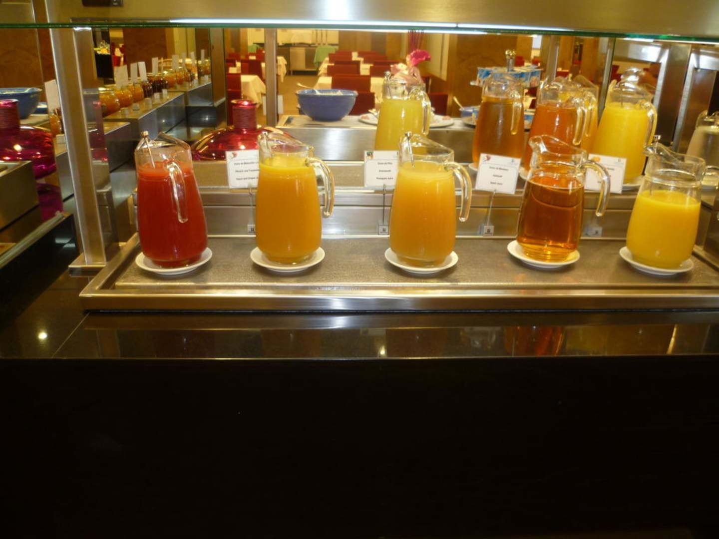 Tomatensaft, Ananassaft, Pfirsich-Traubensaft, Apfelsaft, Orangensaft