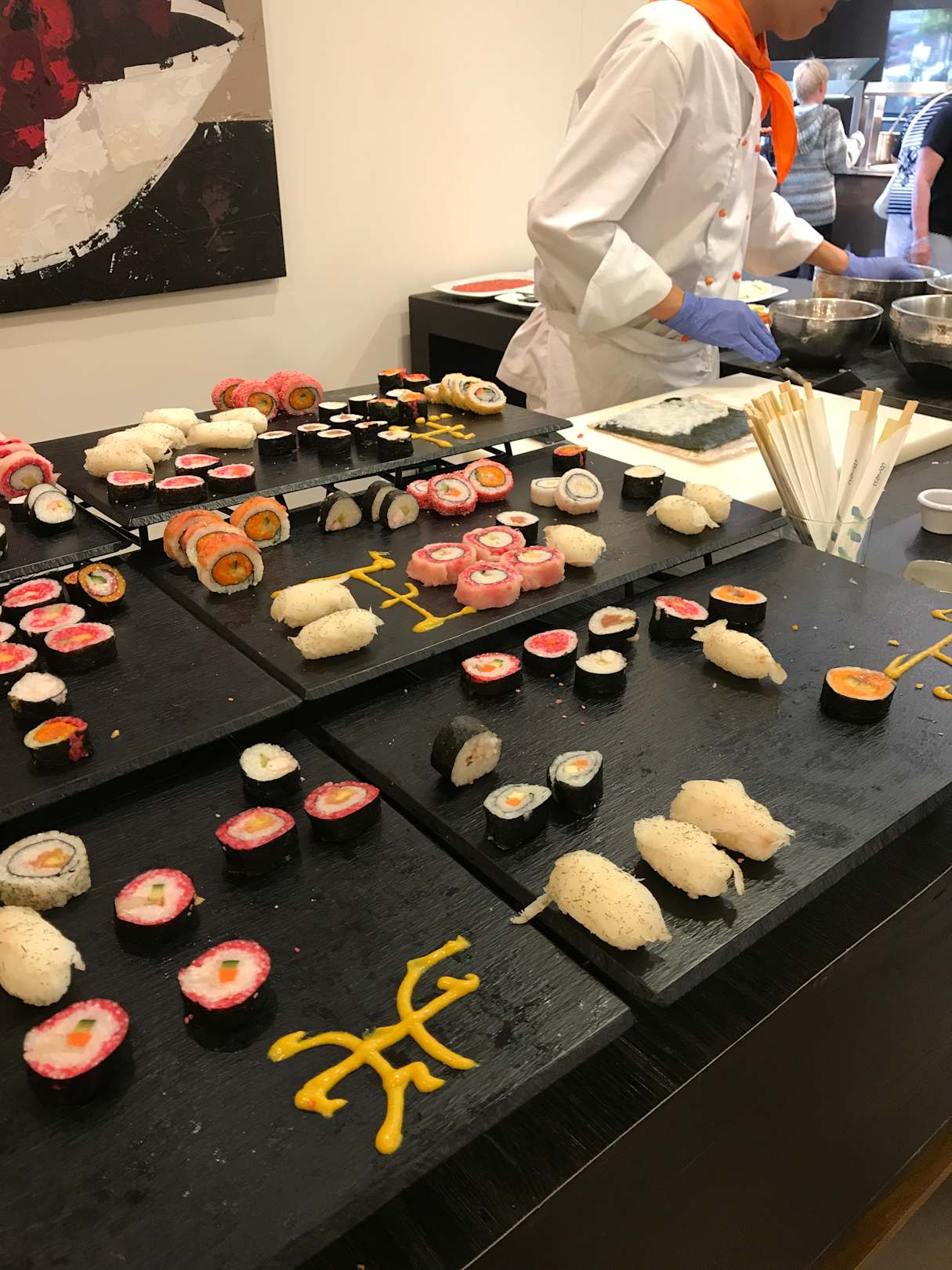Sushi frisch zubereitet und schon ordentlich geplündert.... lecker