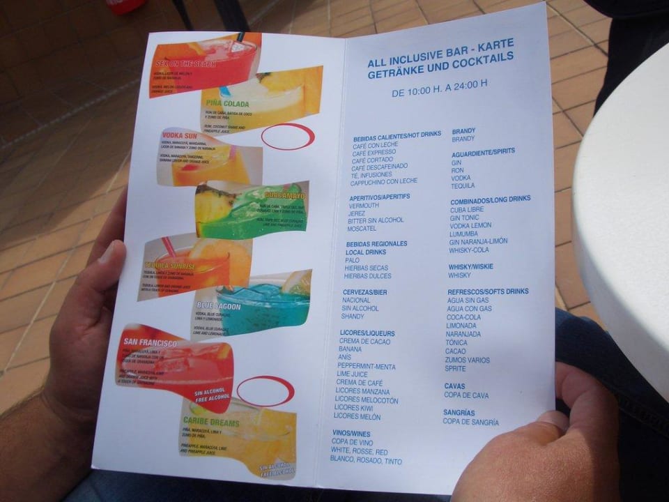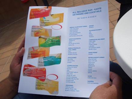Getränkekarte für All inklusiv Gäste