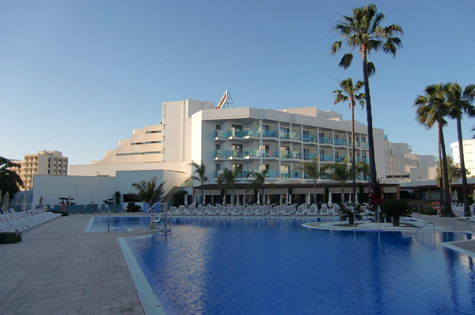 Pool mit Blick auf Restaurantgebäude