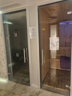 Sauna und Dampfbad. Eine Stunde kostet 10,- EUR (für die ganze Familie)