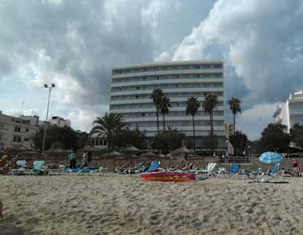 Blick auf das Hotel vom Strand
