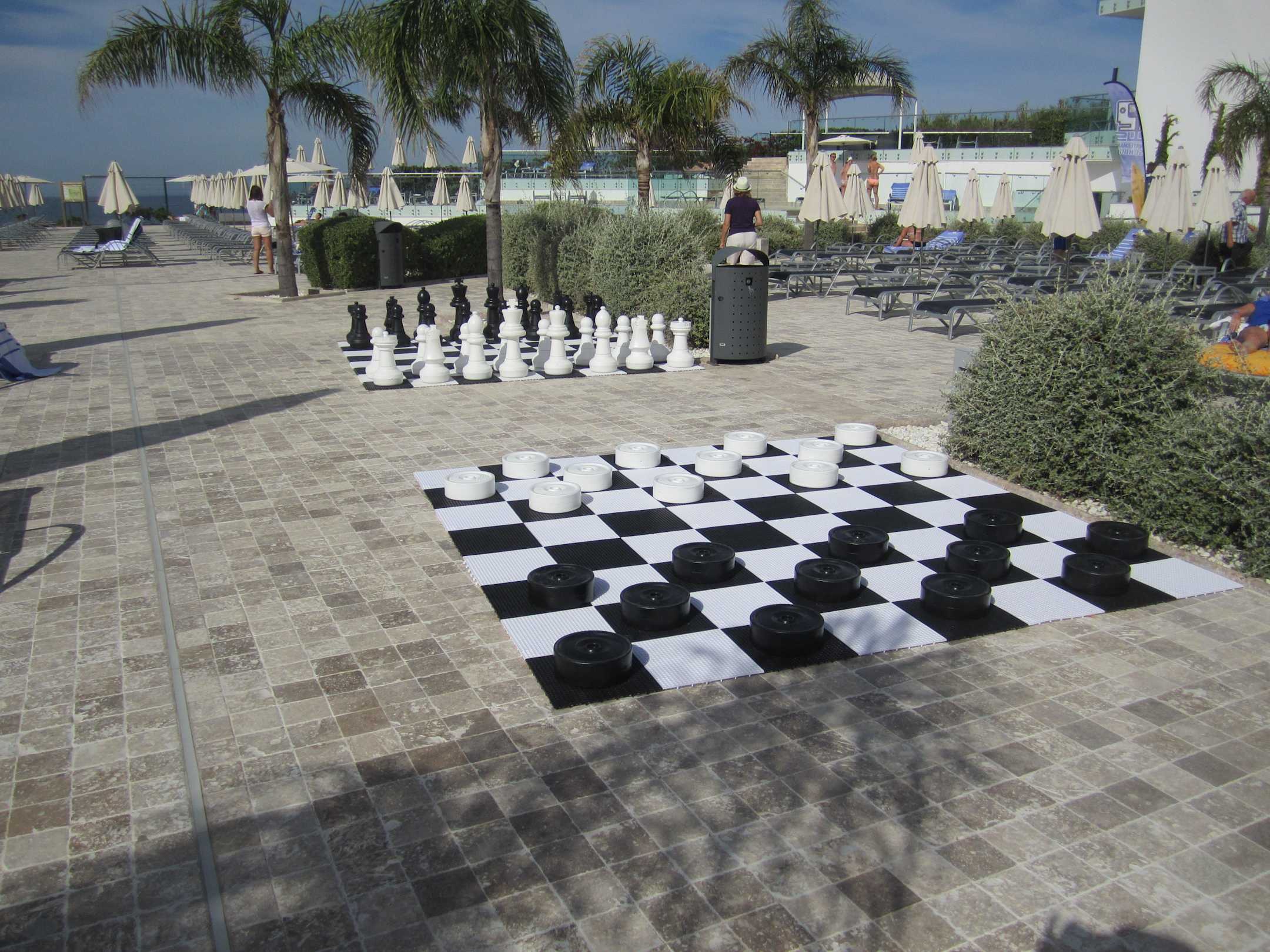 Schach und Dame am Poolrand