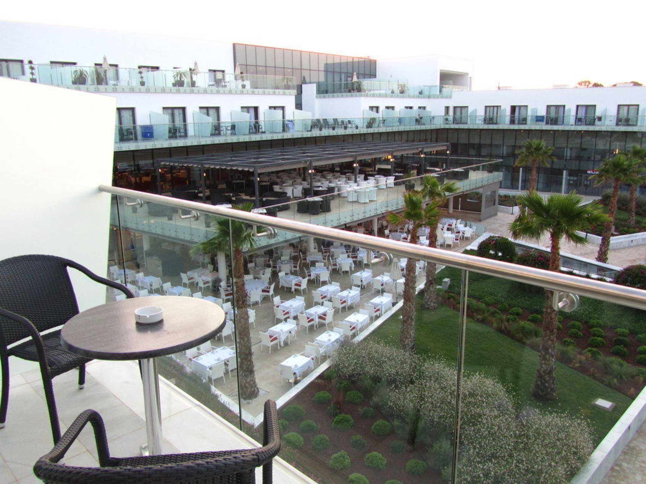 Blick auf Außenbereich von Restaurant und Lobby Bar