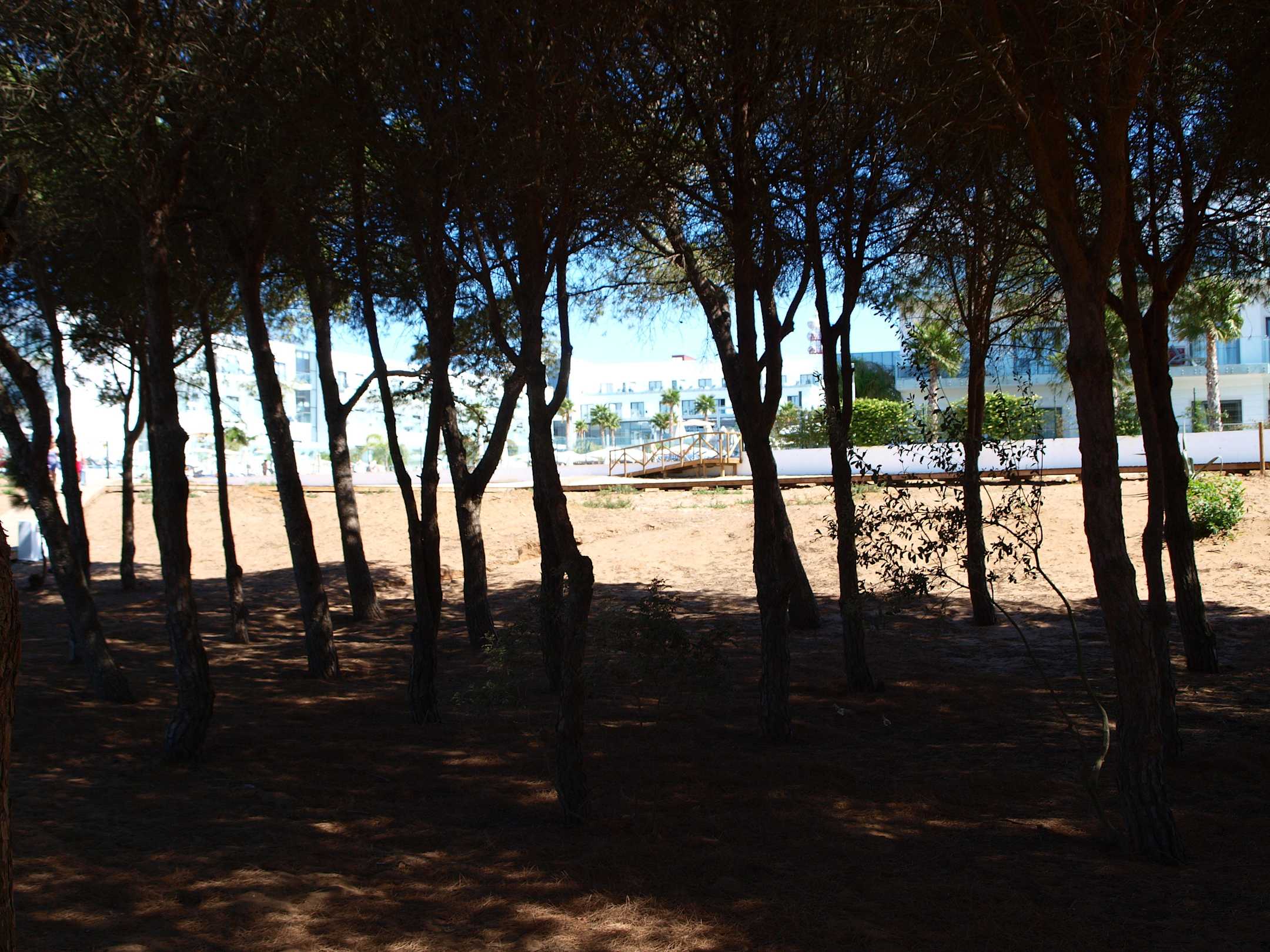Der kleine Wald Richtung Strand, Blick Richtung Hotel