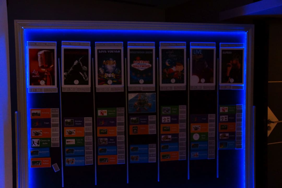 Sport & FreizeitVor dem Speisesaal befindet sich die Infotafel mit den wöchentlichen Tagesanimationen und den Abendunterhaltungen.