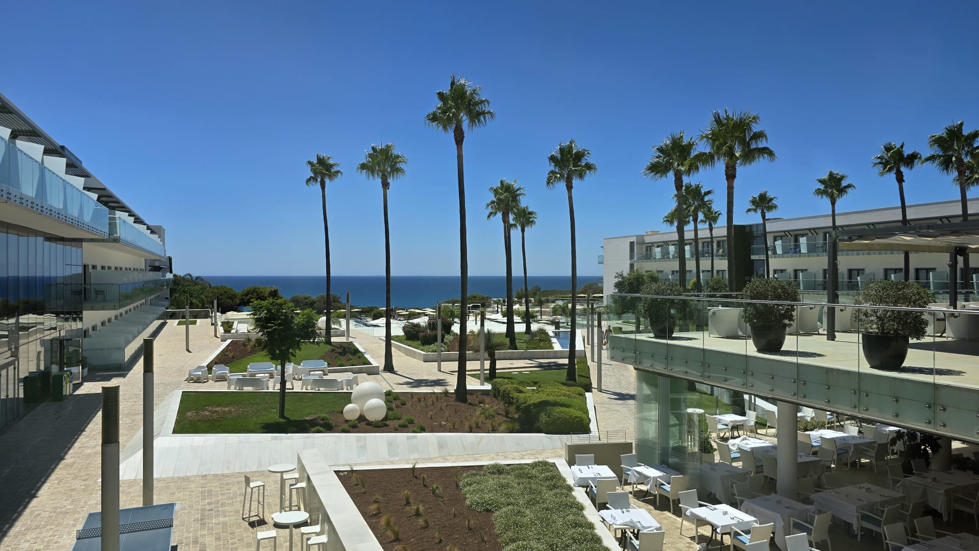 Blick von der Rezeptionsebene in den Garten