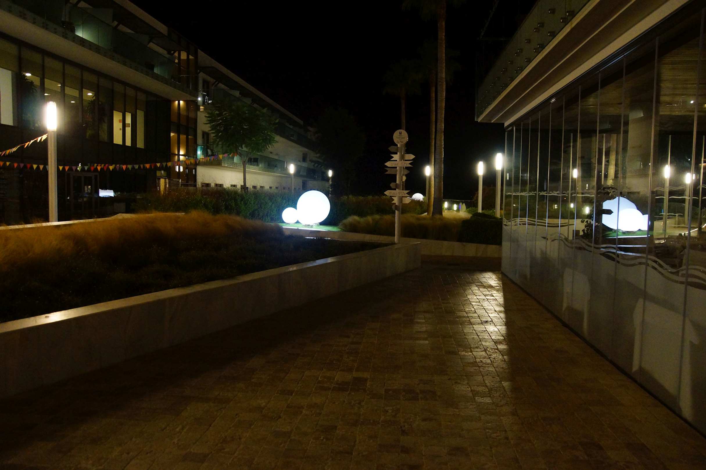 Garten und Poolanlage in der Nacht