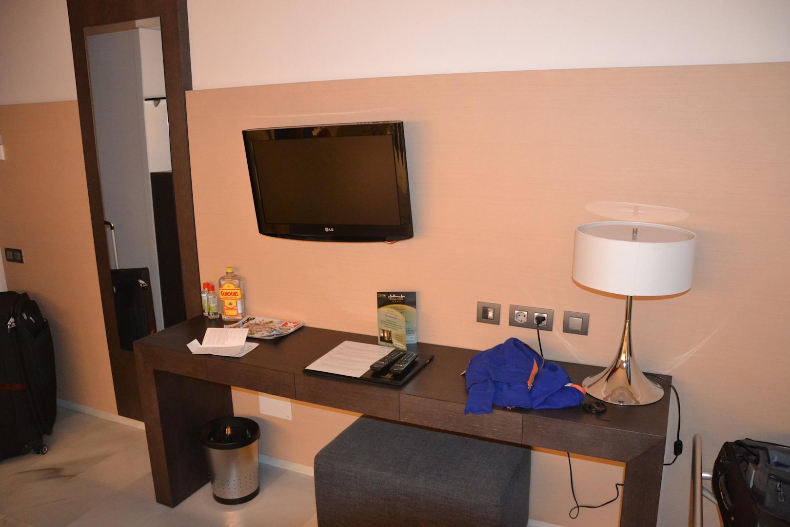 Schreibtisch & 1. Flach-TV