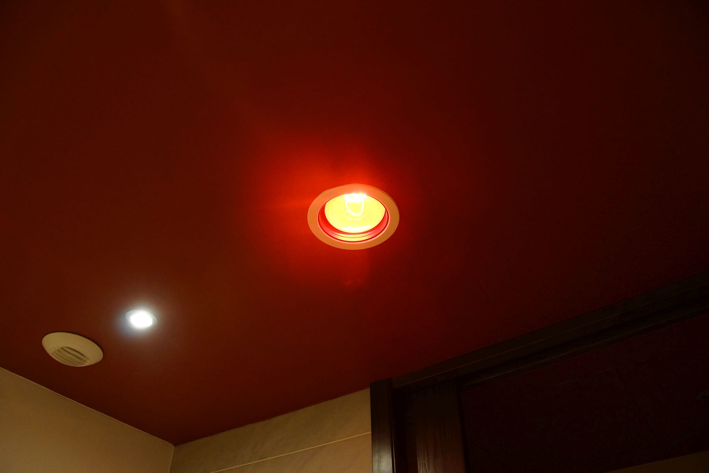 Es gibt sogar eine Wärmelampe im Badezimmer