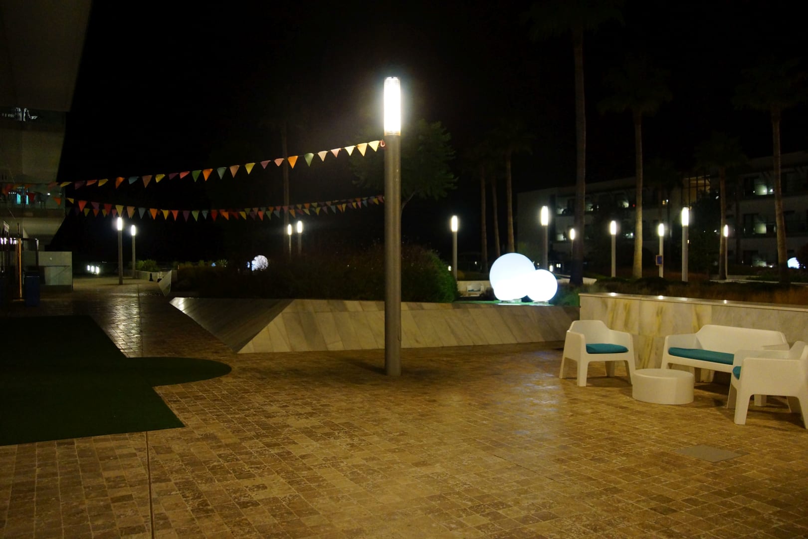 Garten und Poolanlage in der Nacht