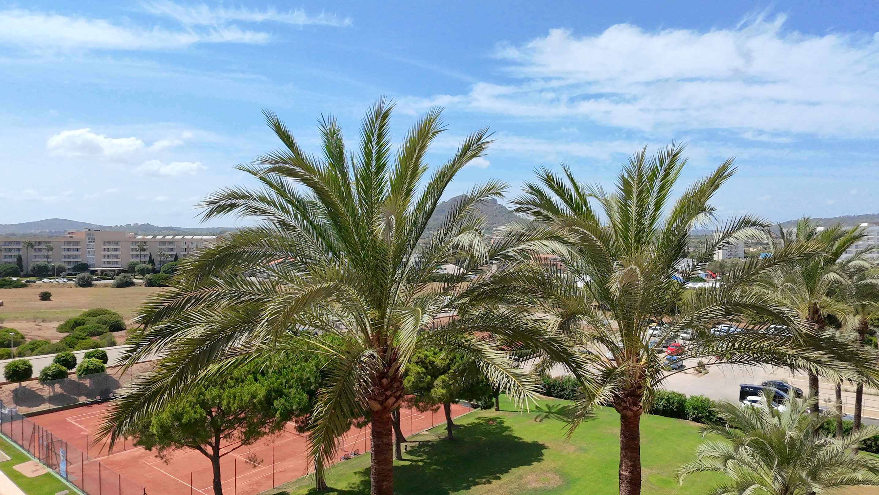 Blick aus dem Zimmer auf die Tennisplätze