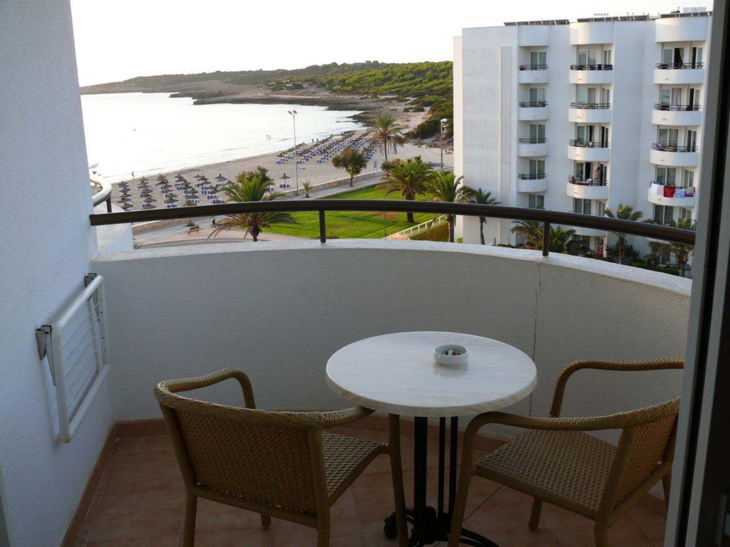 Aussicht aus Zimmer 414 auf Balkon mit Strandbereich