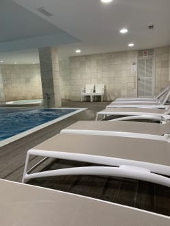 PoolDer Innenpool, aber als Erwachsene kann es nachmittags sehr laut werden wenn die Kinder ins Becken springen und toben. Uns hat das genervt.!