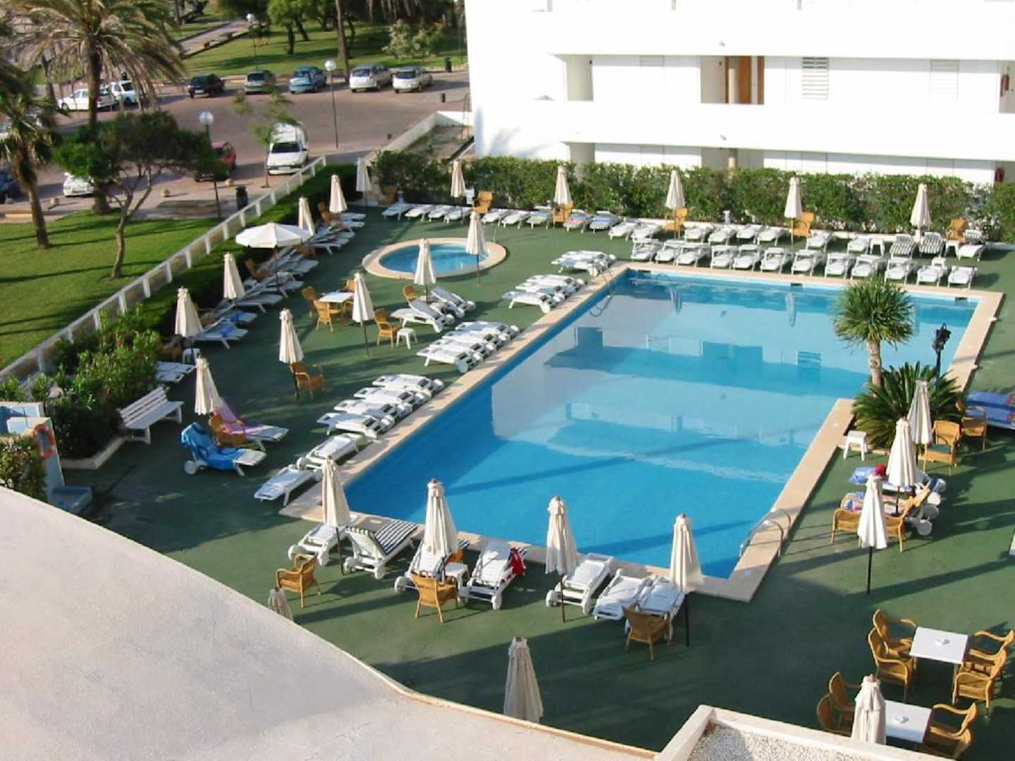 Blick vom Balkon auf den Pool des Hotel Hipocampo in Cala Millor