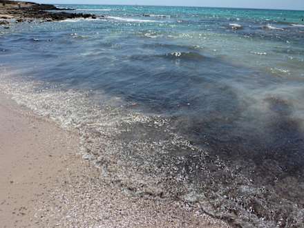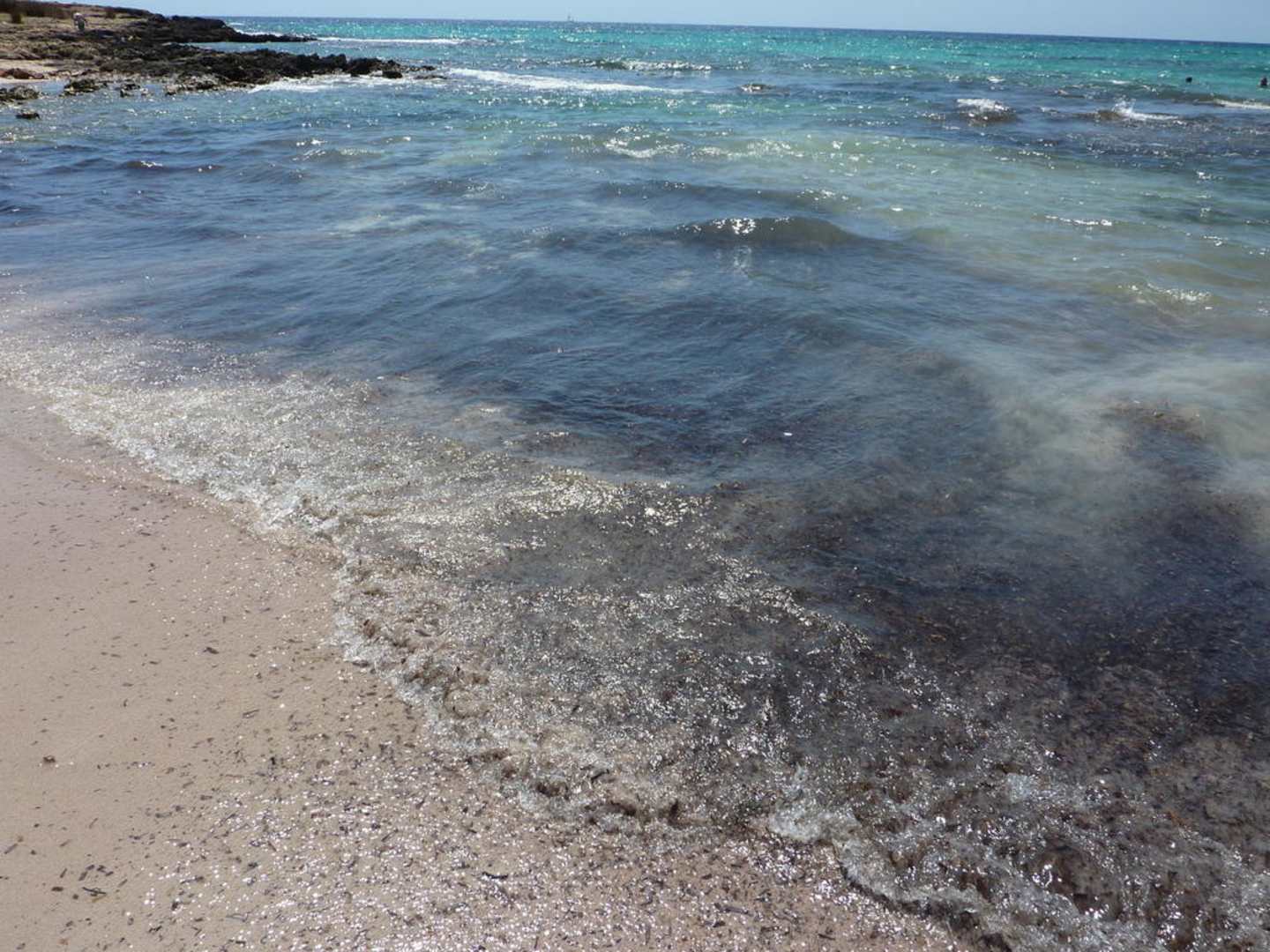 Stinkende Seegras Reste am Strand und im Wasser