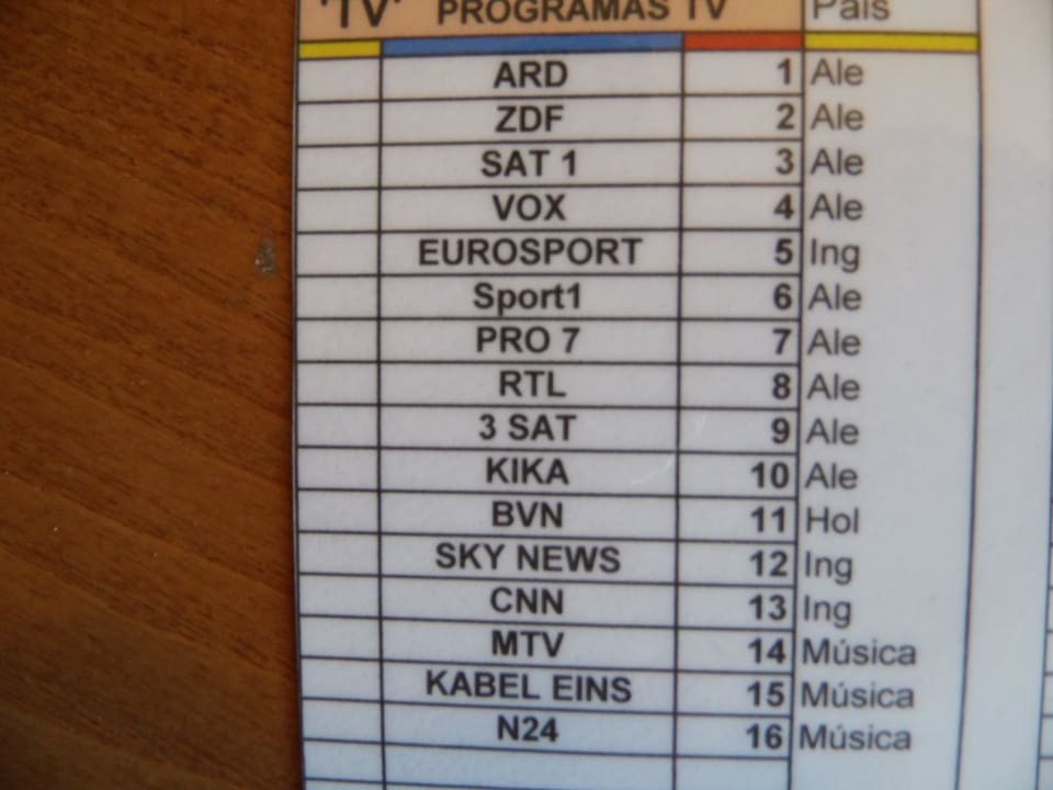 TV Programm im Hotel Mercedes/Cala Millor.