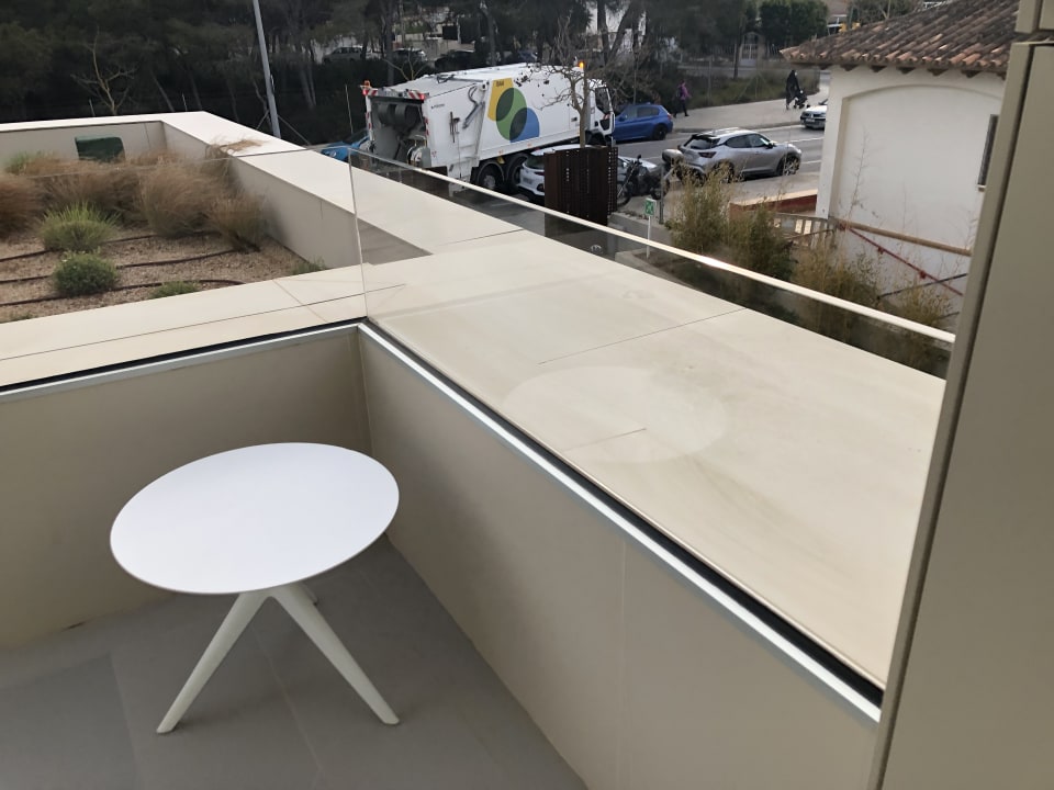 Blick vom Zimmer auf die Hauptstraße und die Lieferantenzufahrt. Von hier aus wurde das Hotel mehrmals täglich beliefert und einmal täglich kam genau hier die Müllabfuhr.