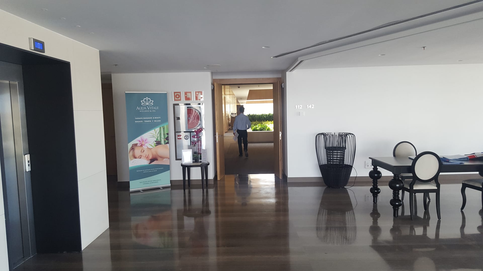 Blick Richtung Schwimmbad, Sauna
