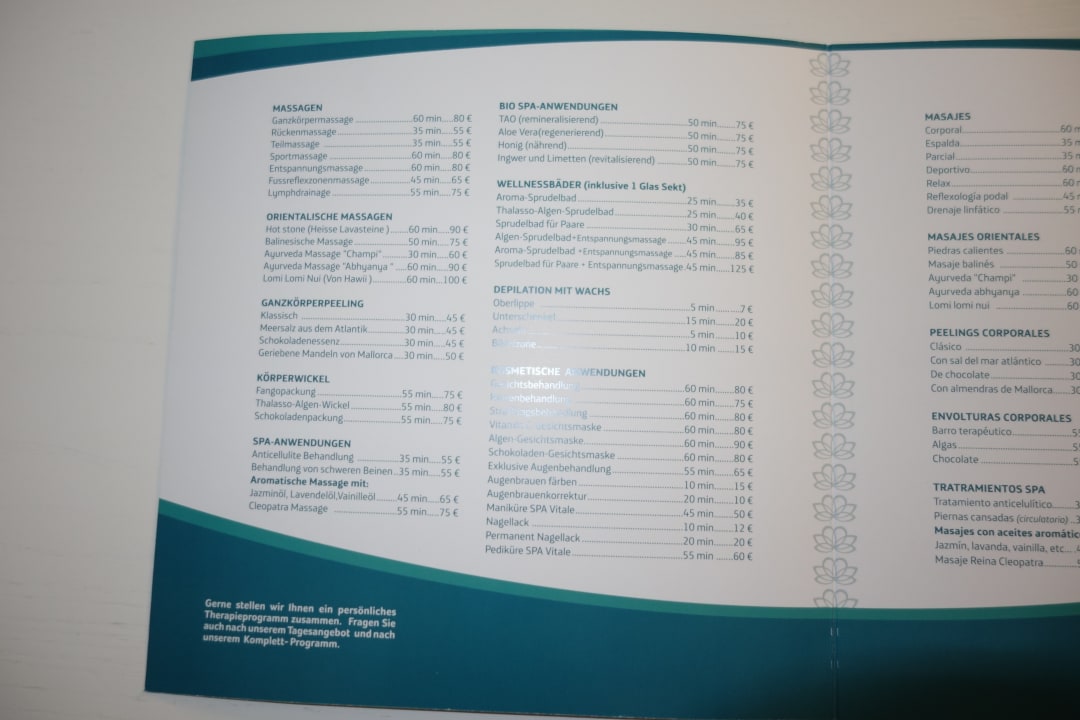 Preisliste Spa