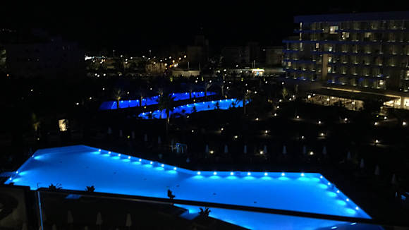 Der Ausblick bei Nacht auf dem Pool