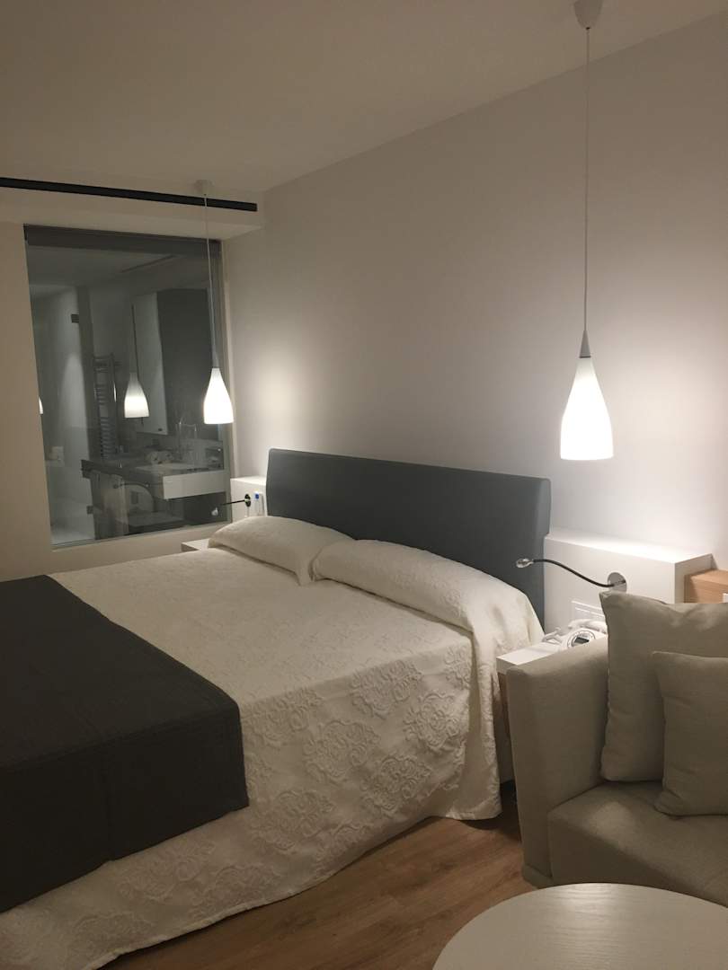 Zimmer mit Blick ins Bad